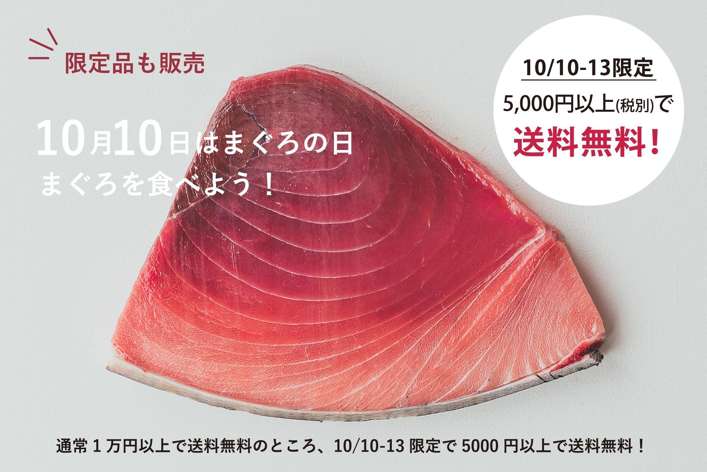 10月10日から13日の4日間限定で、通常¥10,800(税込)以上送料無料のところ¥5,400円(税込)以上送料無料です。全商品が対象となりますのでこの機会にぜひご利用ください。またオンラインFISH MARKETで人気の商品も数量限定で販売します。