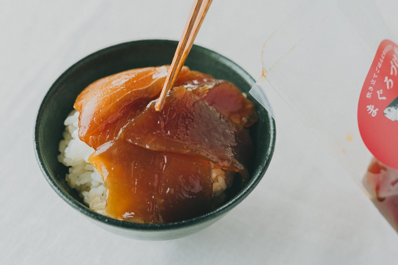 実は2023年には年間8000個も売れたまぐろづけ丼のもと。自家用としてもギフトとしてもリピーターが多く、当店一番人気の商品です。家にストックしているというスタッフも多く、どんな食べ方をしているのか聞いてみました。