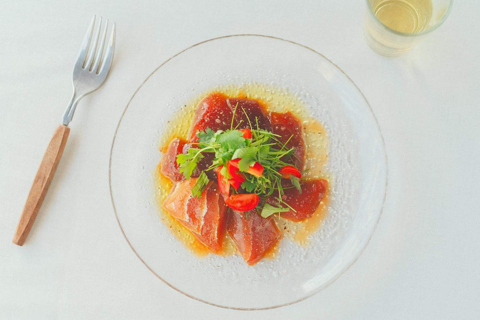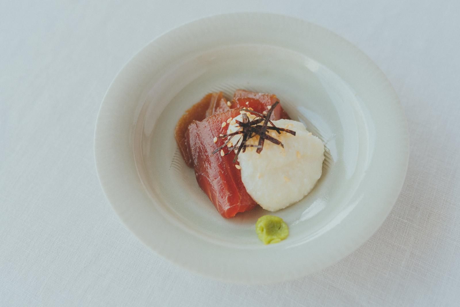 漬けまぐろをそのままお皿にもって、お酒のアテにも。とろろなどと合わせても美味しくいただけます。