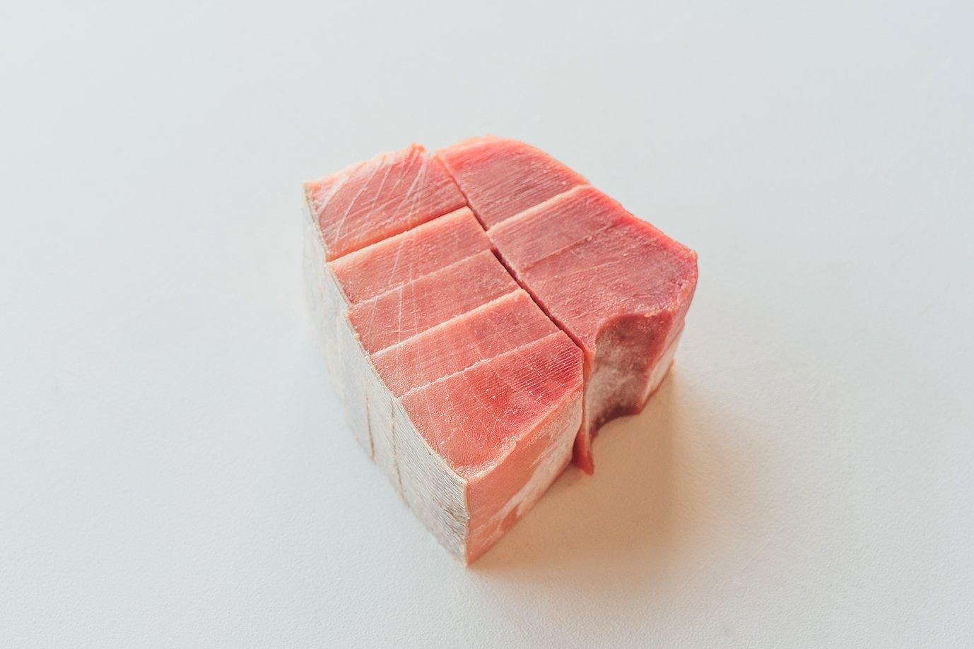 「この商品は、FISHSTANDのオンラインショップを立ち上げる以前からあったロングセラー商品。三崎恵水産の小売向けの看板商品でした。私の友人や、個人的に売ってほしいと依頼があり、みなさんリピートしてくださる方が多かったものです。他にもいろんな刺身用まぐろを扱っていますが、まずはこのメバチまぐろを味わっていただきたい。三崎港でも愛されるメバチは、赤身の美味しさや、とろ身の脂ののり具合もほどよく、あらゆる世代の方に気に入っていただけるはず。問屋ならではのこの業務用カット、たっぷり心置きなく私達のまぐろを堪能していただけるボリュームをお得にお届けします。お子さんの誕生日祝いなどや来客のシーンにぜひご利用いただきたいです。」 (FISHSTAND店主:石橋悠)
