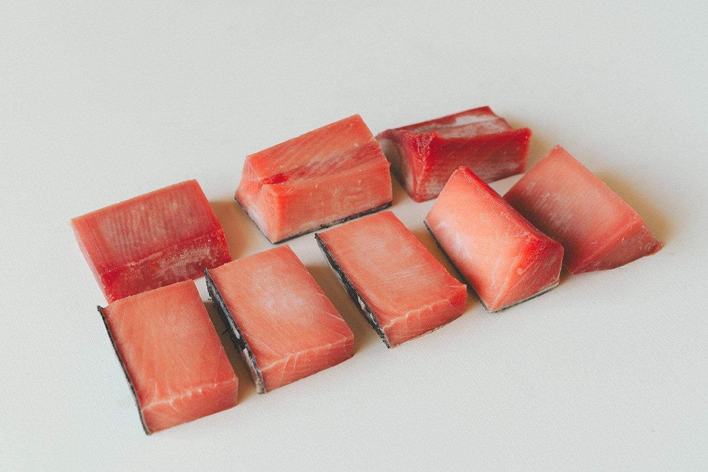 まぐろの切り方も、簡単です。ポイントは筋の方向の見極め。詳しく切り方動画をご参考下さい。